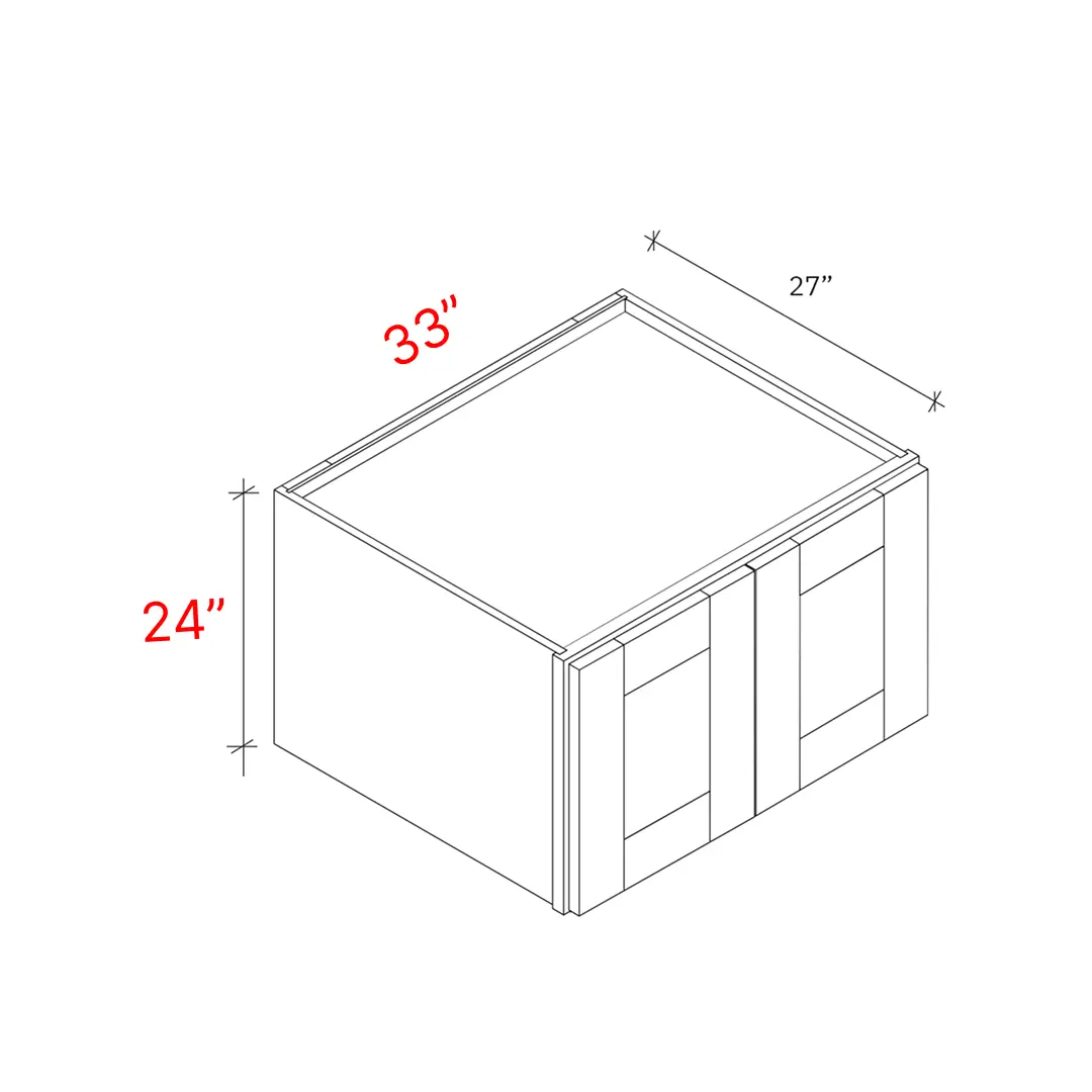 This cabinet, identified as the Bevel White 33″w X 24″h X 27″d Wall Cabinet (SKU: BW-W332427), features a functional design perfect for any Kitchen setting. With dimensions of 33″ x 24″ x 27″, it is available from RTA Cabinets in two assembly styles: Ready-to-assemble (RTA) for custom projects, and Pre-assembled for a faster installation process.
