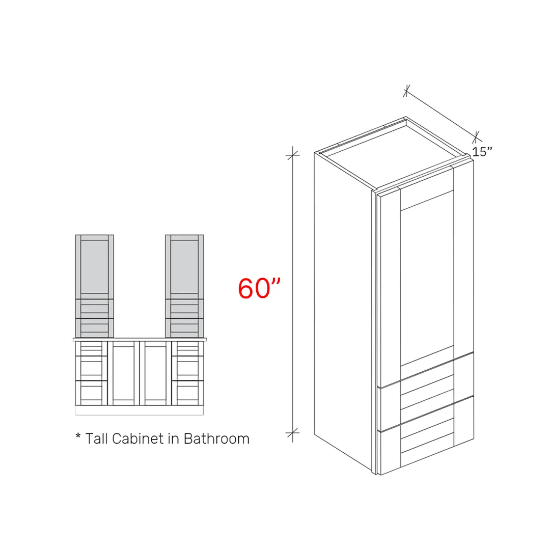Maximizing vertical storage, the Shaker Natural 18″ wide x 60″ high x 15″ deep Counter Wall Cabinet from RTA Cabinets is a practical solution for kitchens, bathrooms, laundry rooms, or office spaces. Its 15″ depth keeps items within easy reach while maintaining a streamlined profile above counters.